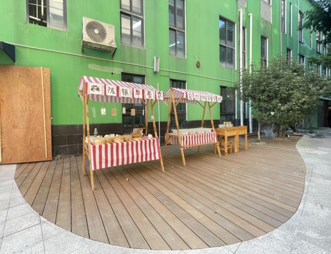 改造前,幼兒園旁是一片雜亂的草地,不僅影響了整體環境美觀,還存在安全隱患。為了充分利用這塊空地,甲方決定進行改造,并選擇了麗耐塑木地板作為地面材料。